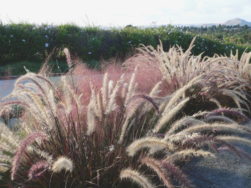 Drought tolerant grass captures afternoon sunlight