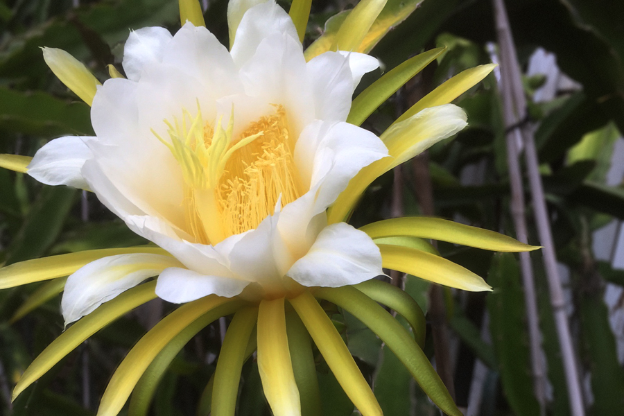 Hylocereus undatus bears white dragon fruit, or, pitaya blanca. These fruits are a rich source of vitamin c, iron, and calcium, are low in calories and very filling - a truly guilt free and delicious snack!